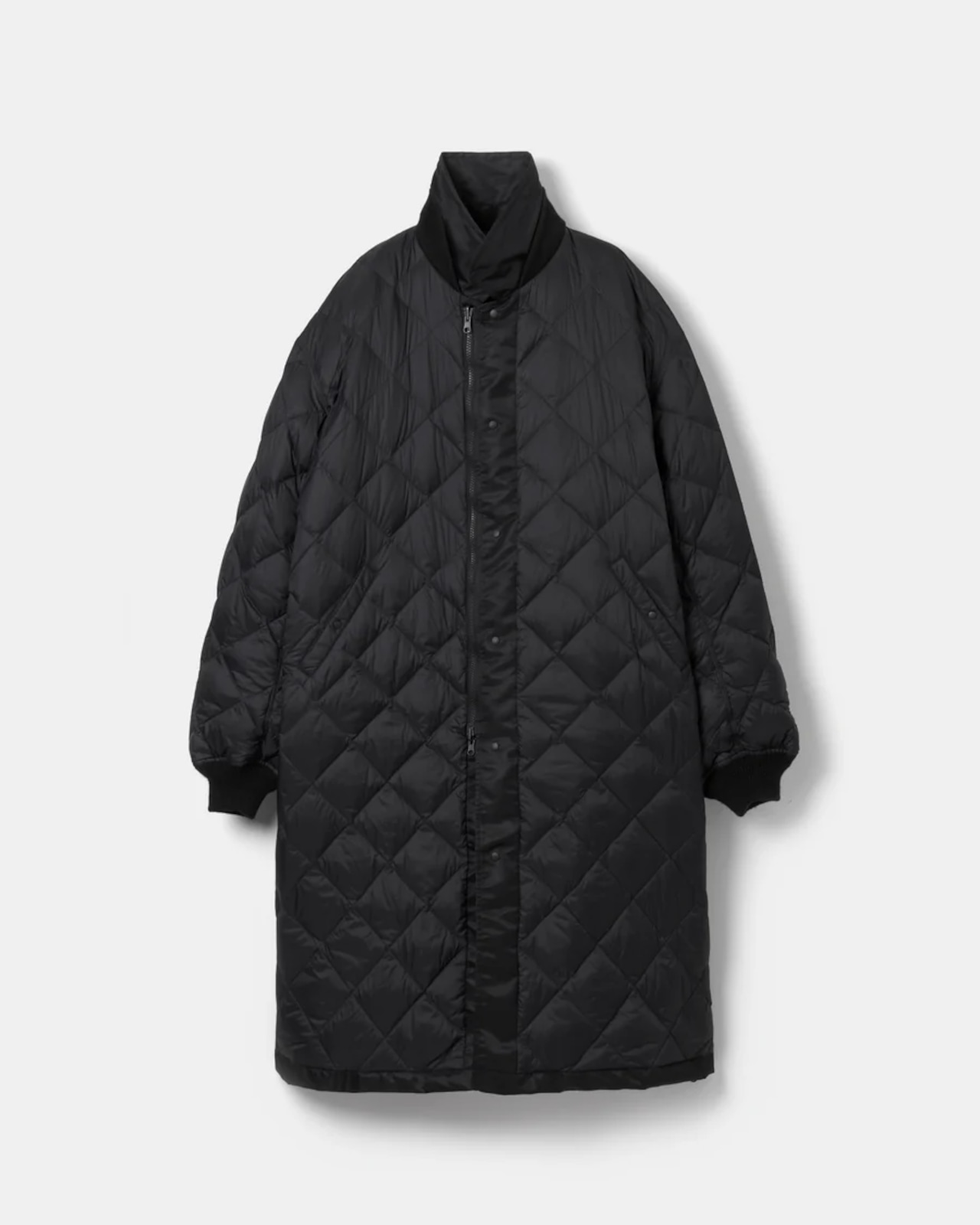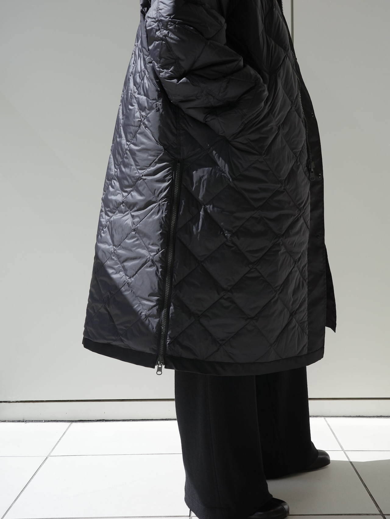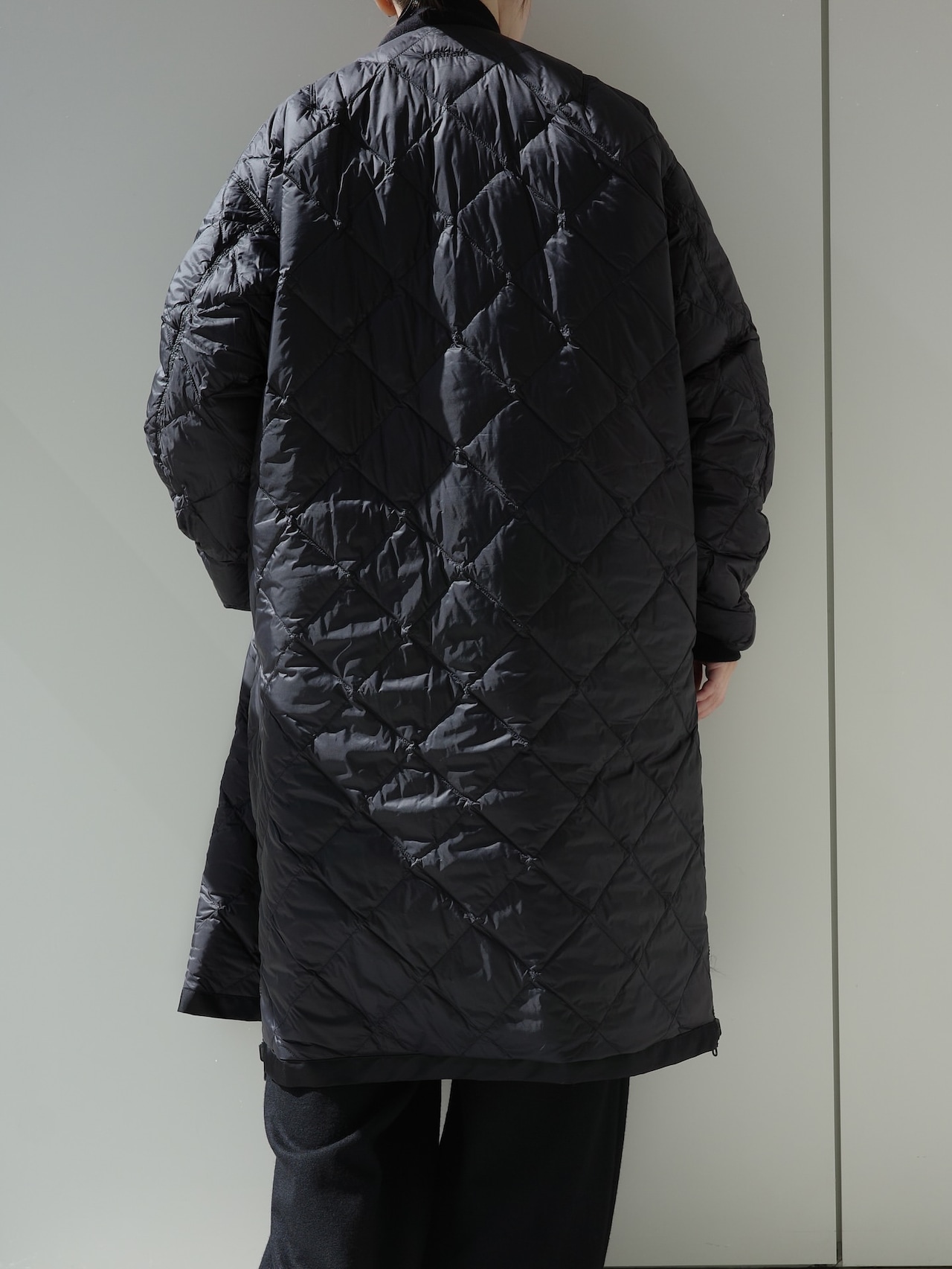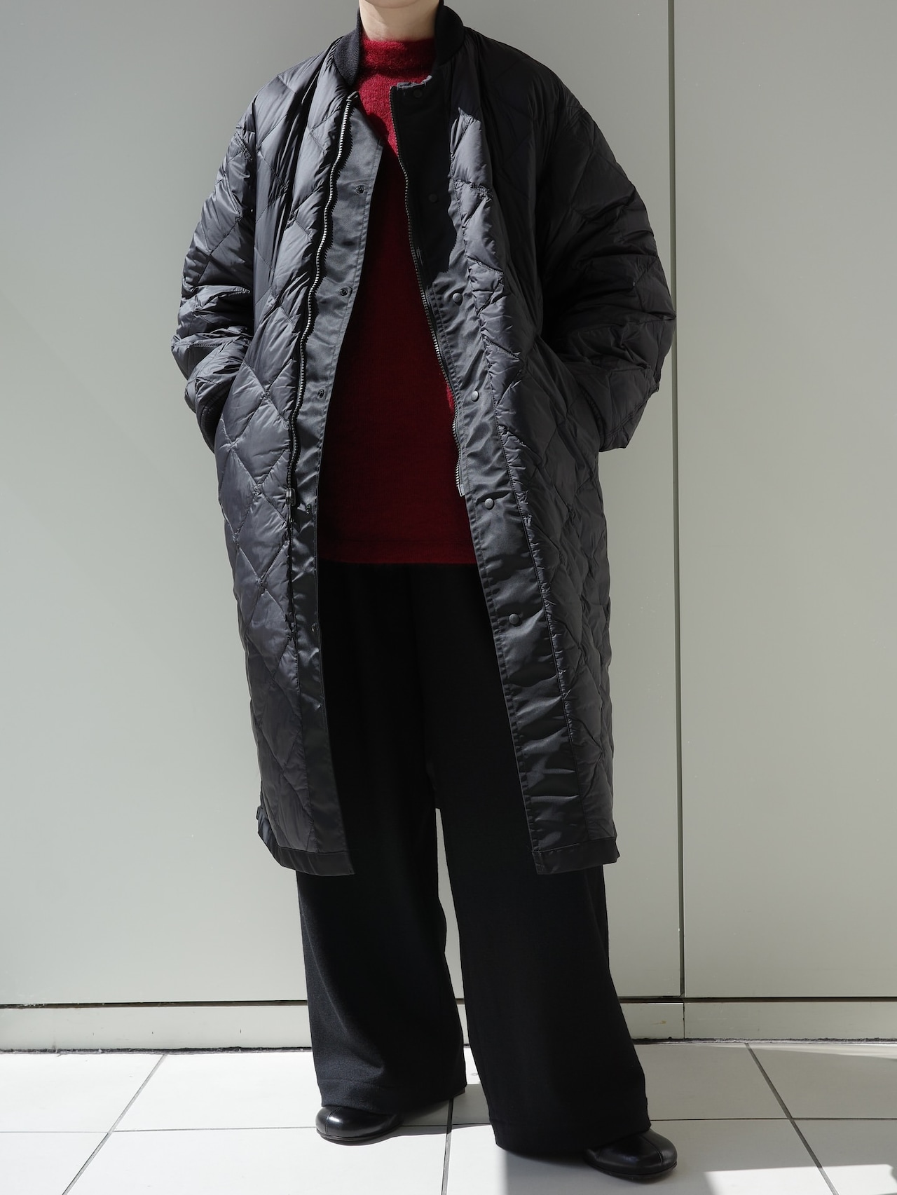 表面はマットでエレガントなナイロン、裏面はダウンのキルティング構造という異なる表情を持ち、気分やスタイリングに応じた着こなしが可能。