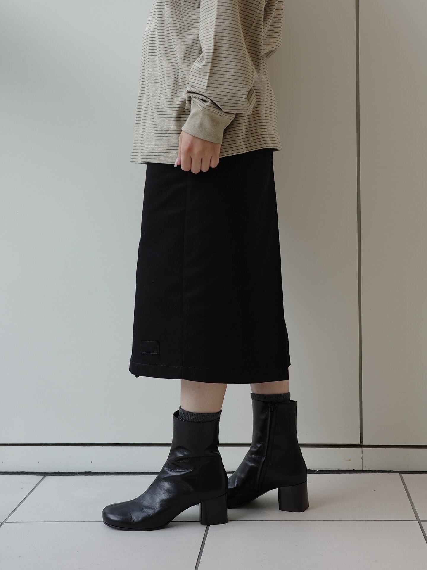 ややオーバーサイズな、ボックスシルエットが特徴の長袖ボーダーTシャツ。袖は2枚袖になっており、立体的なシルエットになっています。