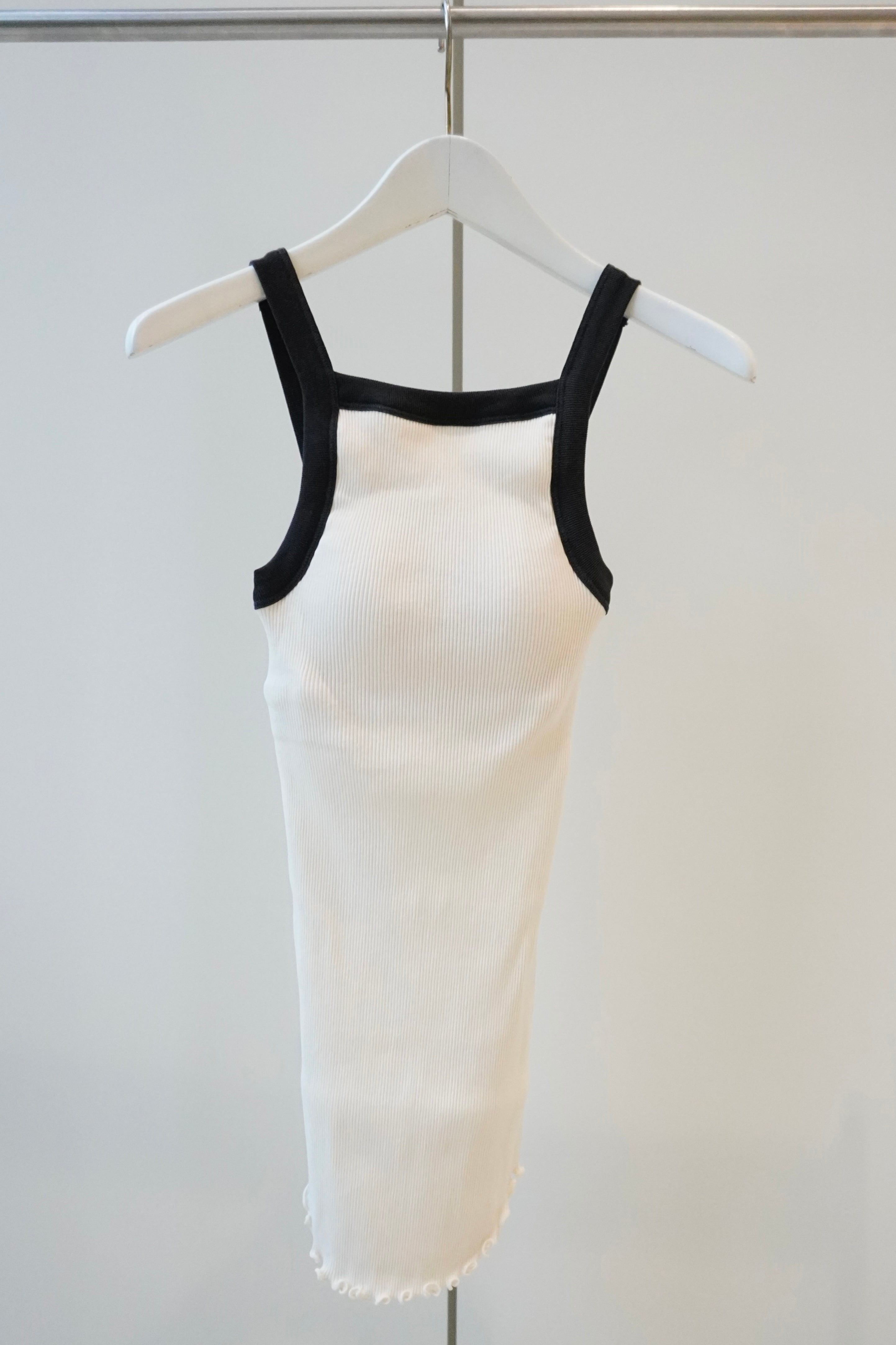 肌離れの良いサラリとした質感の繊細なリブ生地を使用した新型アメスリタンクトップ。