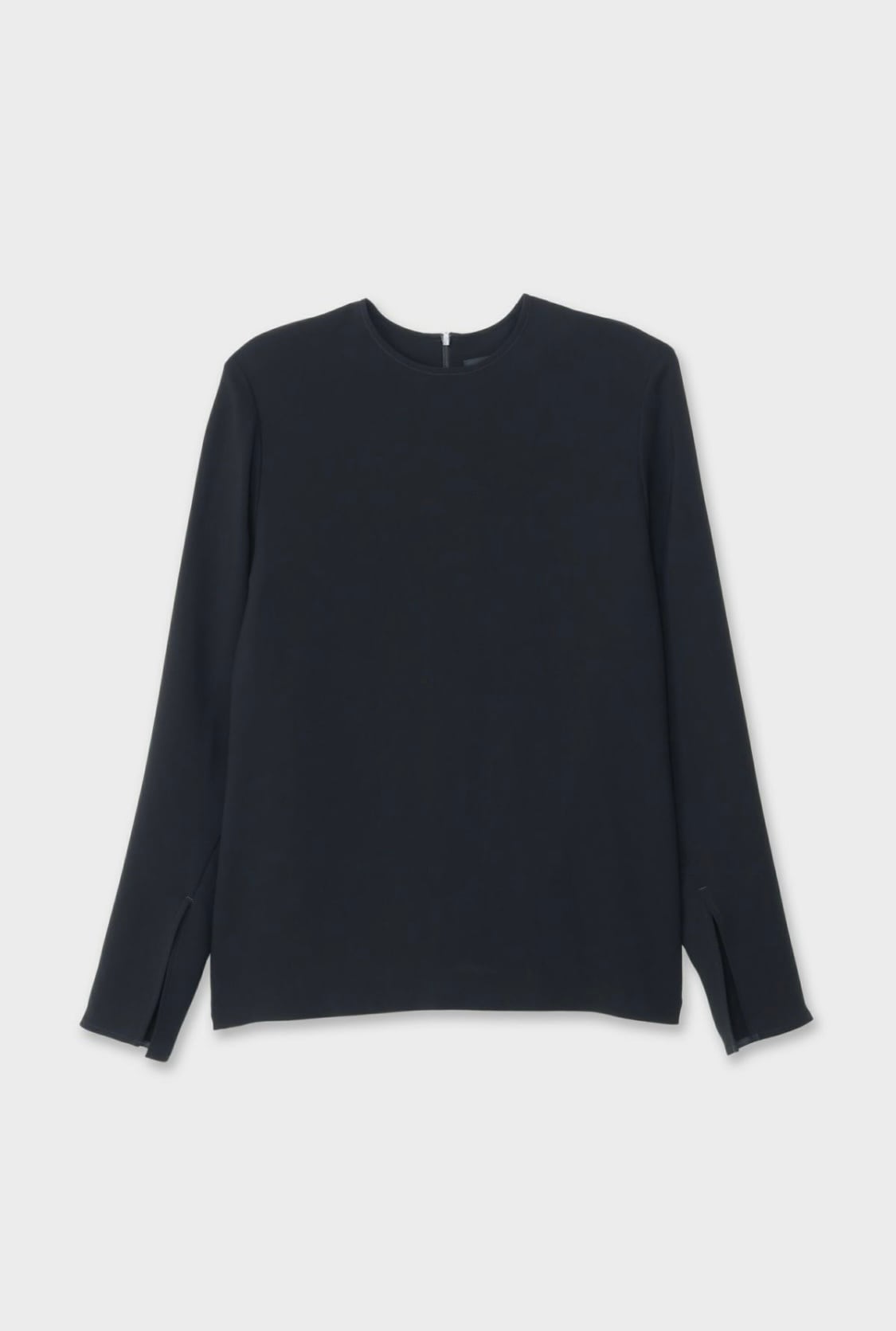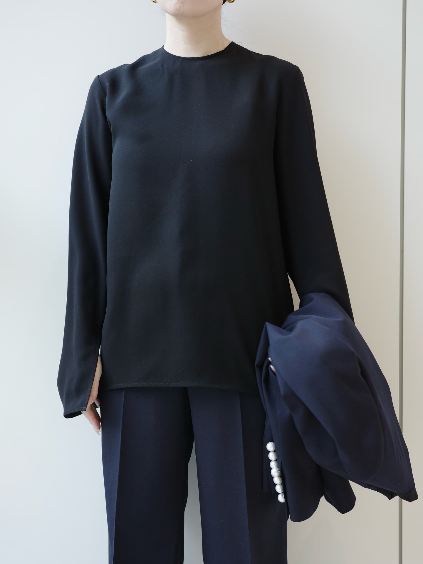 余計な装飾を排した、静かな存在感を放つクルーネックブラウス。