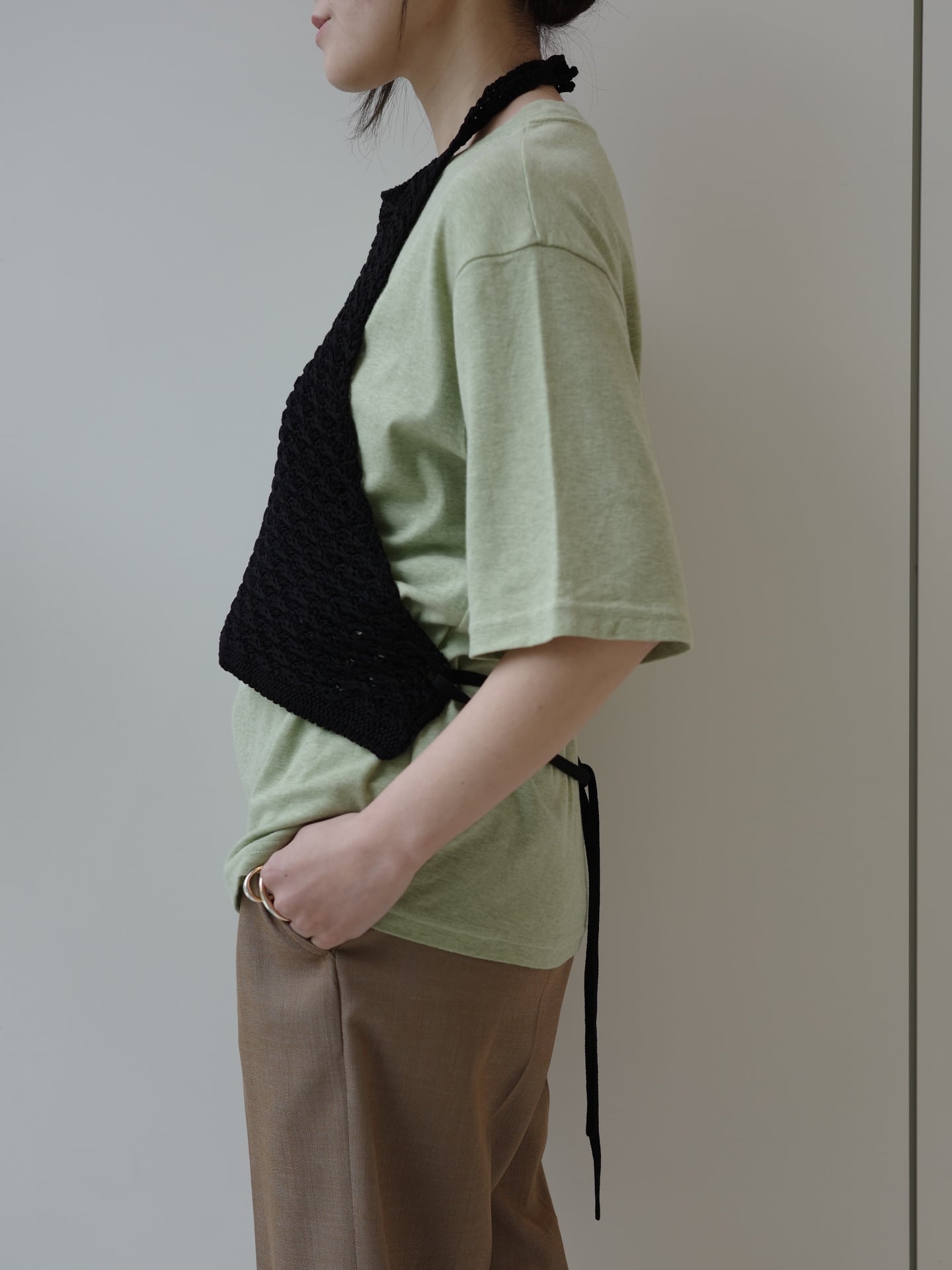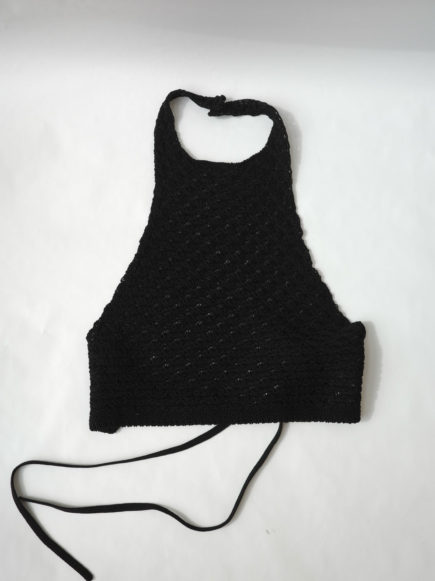 太番手のシルケットコットン糸を使用し、スタークロスステッチで立体的な凹凸感を表現したホルターネックトップス。