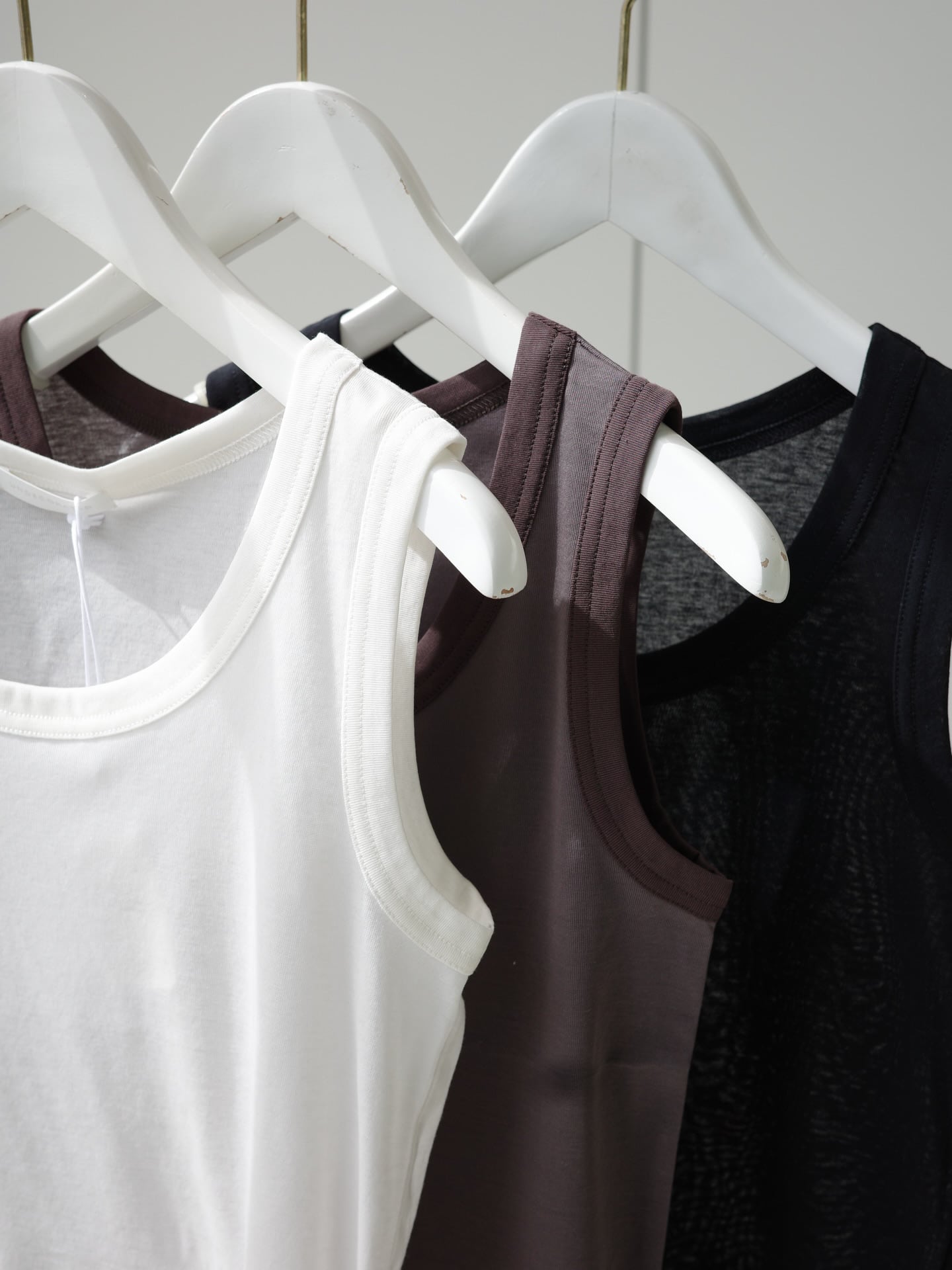 UNDECORATED | SHEER TRIMING TANK TOP - IVORY -