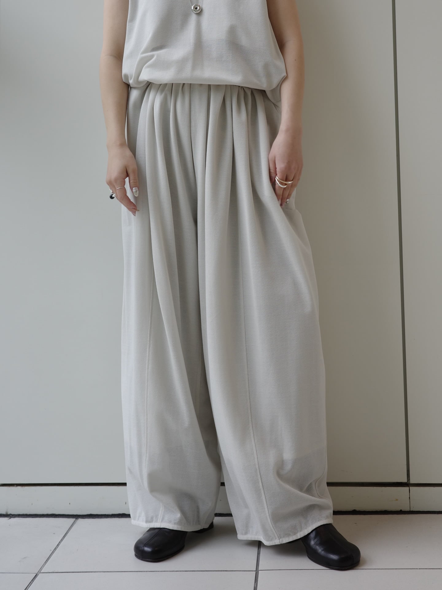 HAKUJI | Crepe jersey gather pants - ICE GREY -