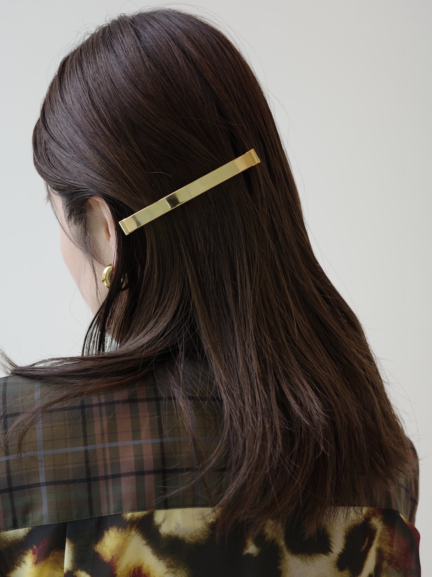 メタルの質感が繊細に輝き、まるでジュエリーのようにスタイリングに華を添えるバレッタ。ブランドのこだわりであるオリジナル金具を先端にあしらい、シンプルながらも他にはない存在感を演出します。ミニマルで上質、そして実用性も兼ね備えた、大人の女性のためのヘッドアクセサリーシリーズです。