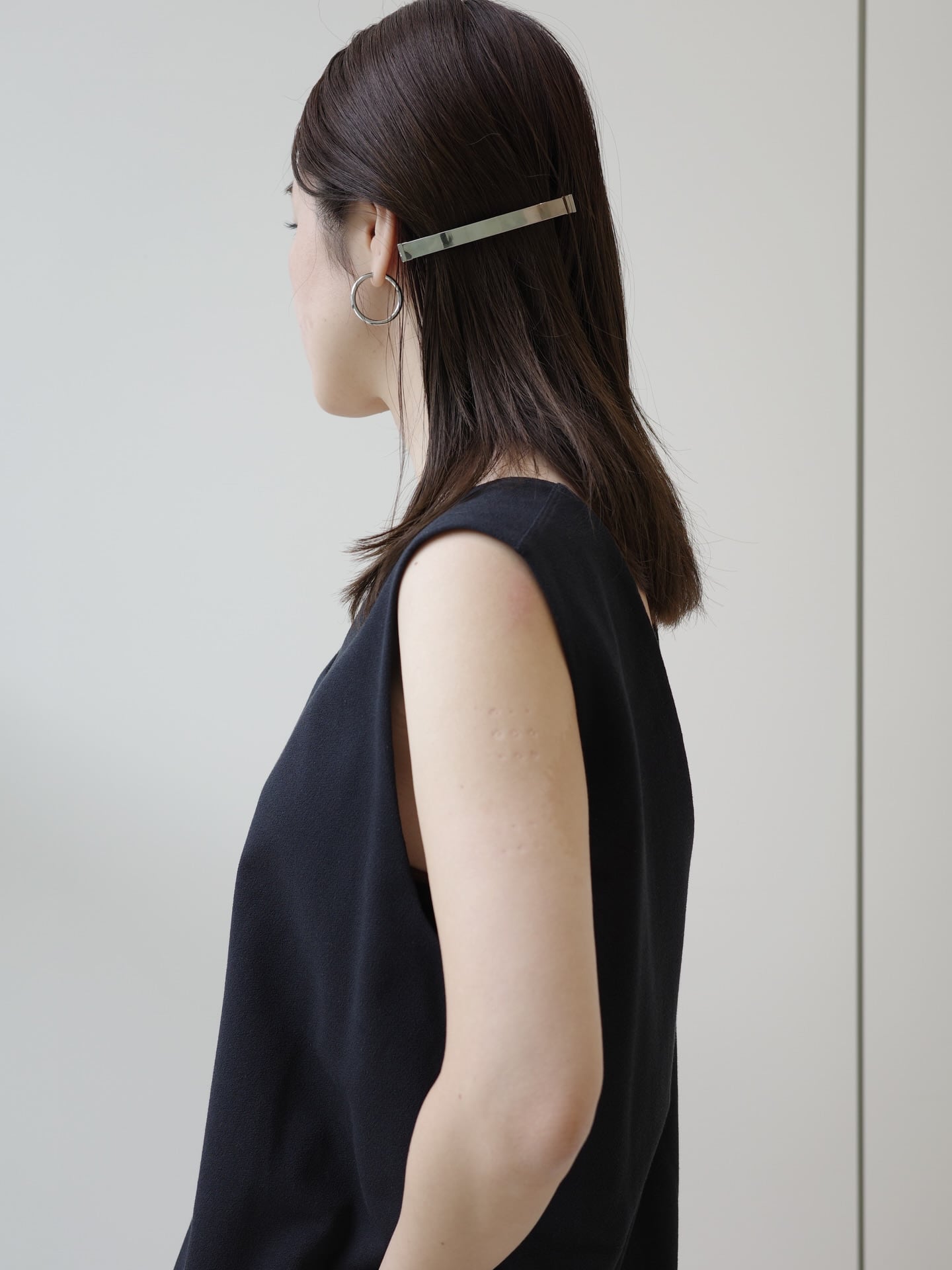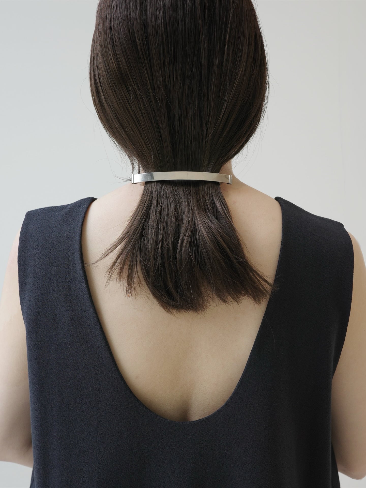 メタルの質感が繊細に輝き、まるでジュエリーのようにスタイリングに華を添えるバレッタ。ブランドのこだわりであるオリジナル金具を先端にあしらい、シンプルながらも他にはない存在感を演出します。ミニマルで上質、そして実用性も兼ね備えた、大人の女性のためのヘッドアクセサリーシリーズです。