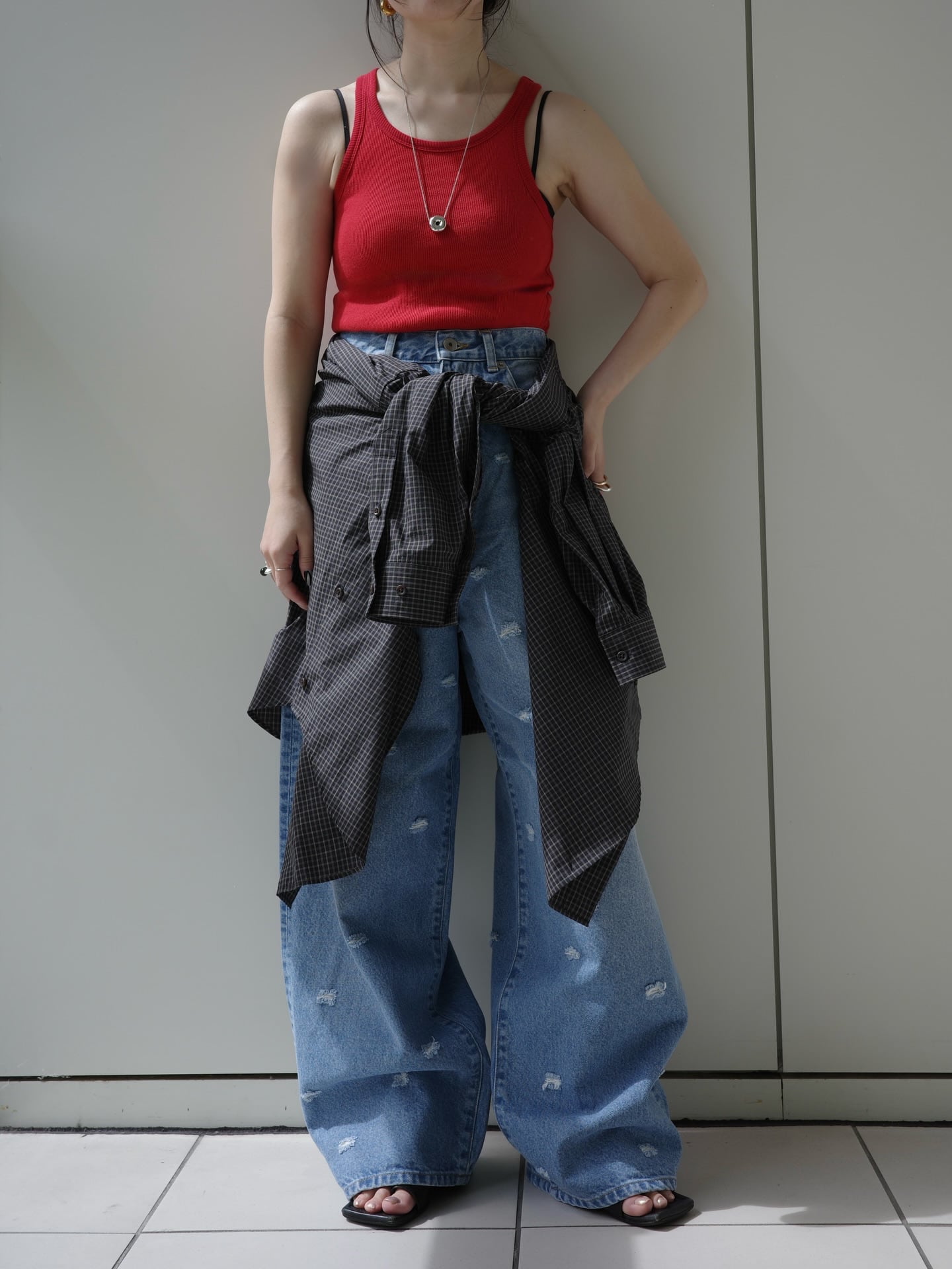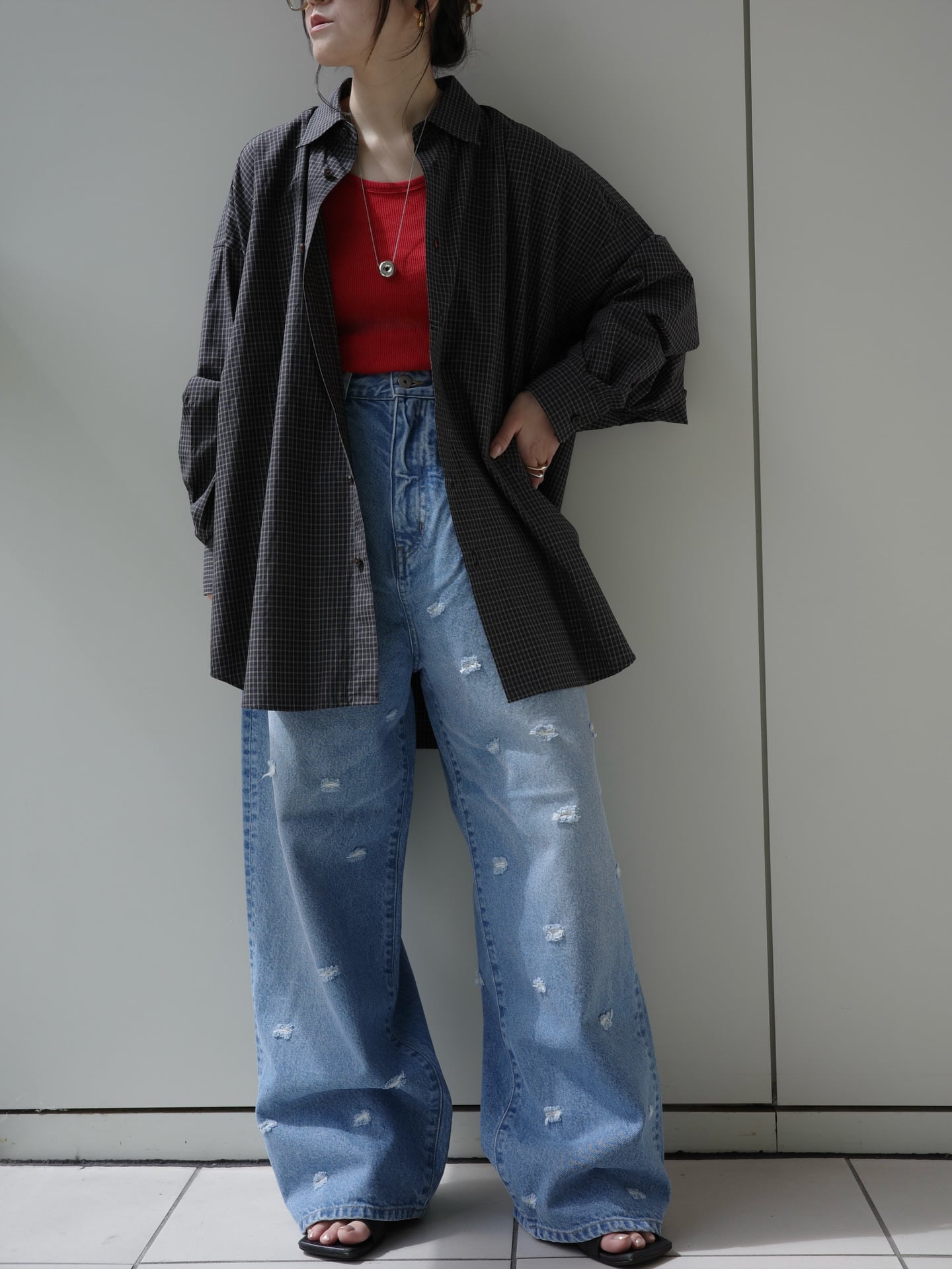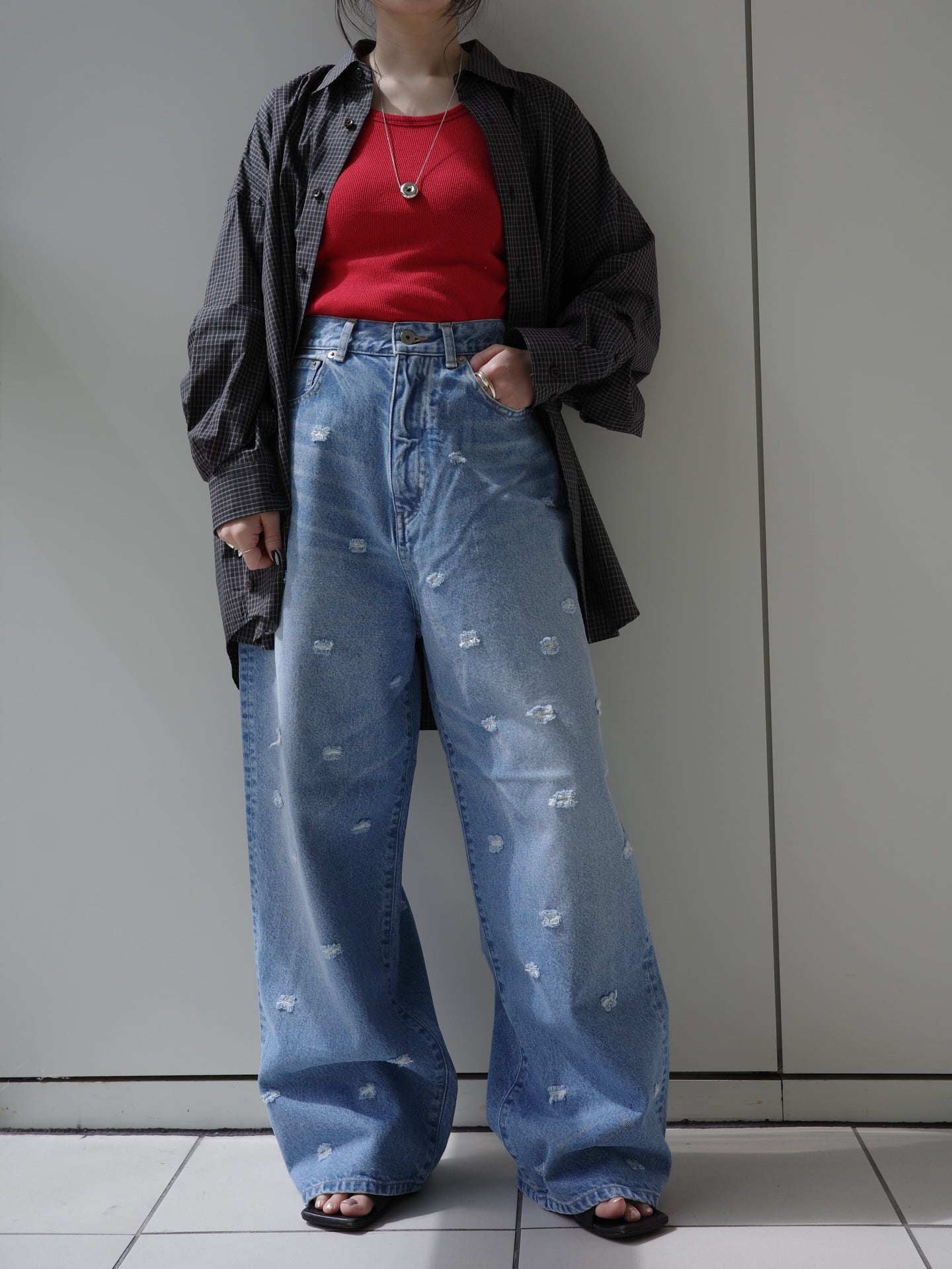 INSCRIRE | Dot Hole Denim Pants - BLUE USED -