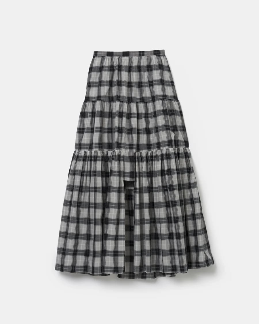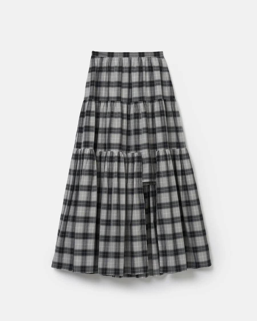 08sircus | Cupro cotton check tiered skirt - GRAY -