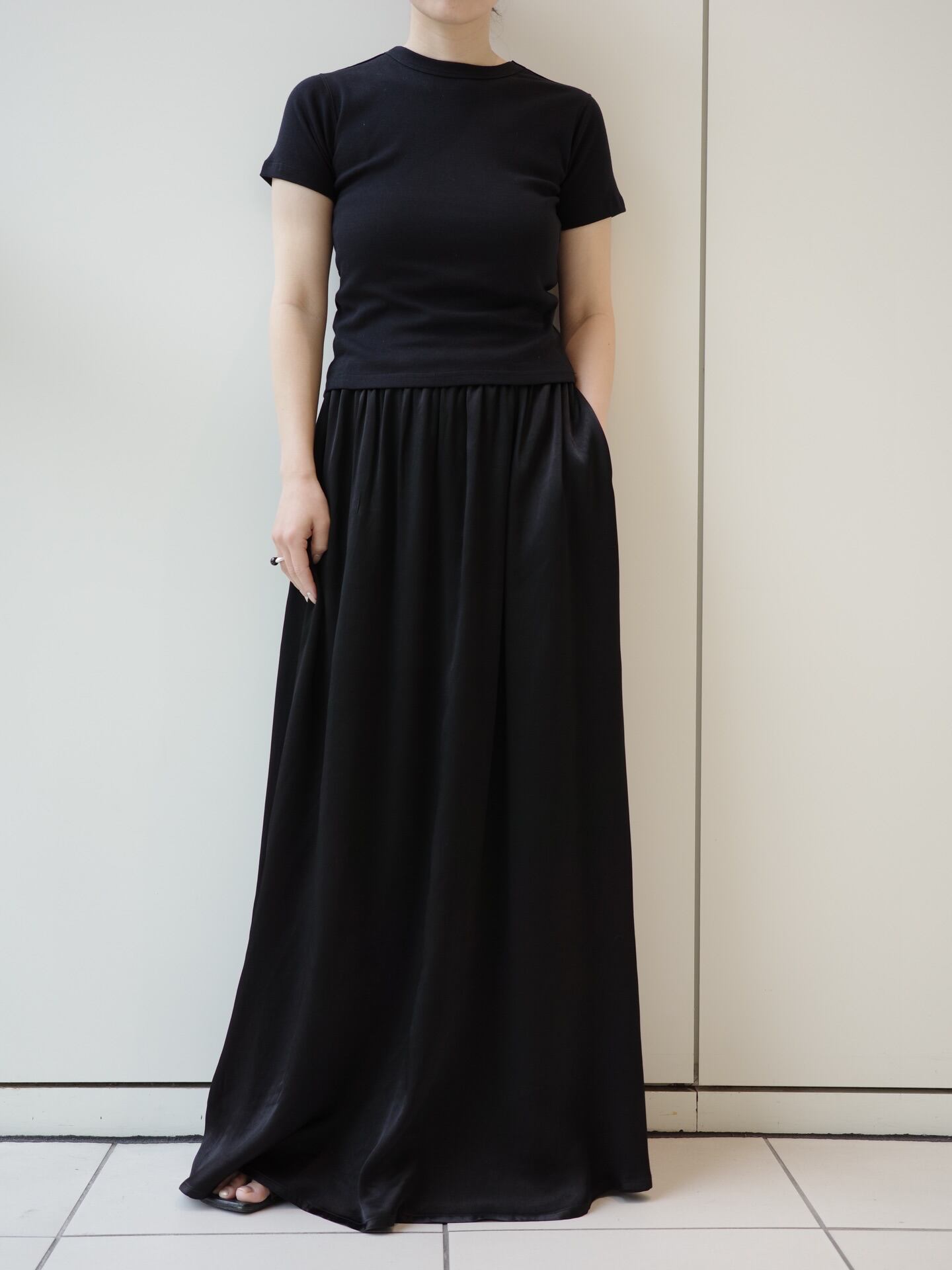 determ; | Collagen Satin Gathered Skirt - BLACK -
